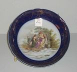 Blue & gold hand painted compote with picture of Oberon & Titania - 8" round by 3" tall Blue & gold hand painted compote with picture of Oberon & Titania - 8" round by 3" tall