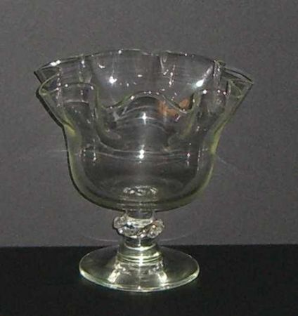 Clear glass ruffled top compote - 6 1/2" wide x 6 1/2" tall Clear glass ruffled top compote - 6 1/2" wide x 6 1/2" tall