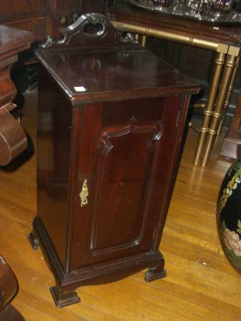 Mahogany bedside commode with pierced back splash - 36" tall by 15" deep by 16" wide Mahogany bedside commode with pierced back splash - 36" tall by 15" deep by 16" wide
