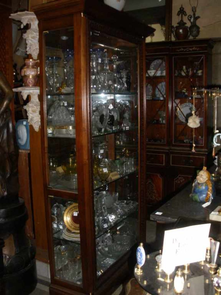 Lighted Glass Mahogany Mirrored Display Cabinet w/Four Glass Shelves - 80" tall x 42" wide x 16 1/2" deep Lighted Glass Mahogany Mirrored Display Cabinet w/Four Glass Shelves - 80" tall x 42" wide x 16 1/2" deep