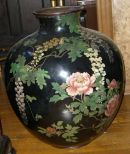 Large metal oriental floor vase with birds - 18" round by 25" tall Large metal oriental floor vase with birds - 18" round by 25" tall