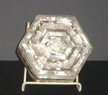 Mother of pearl hexagon jewelry box red satin lined - 6 inches front to back by 6 1/2 inches side to side Mother of pearl hexagon jewelry box red satin lined - 6 inches front to back by 6 1/2 inches side to side