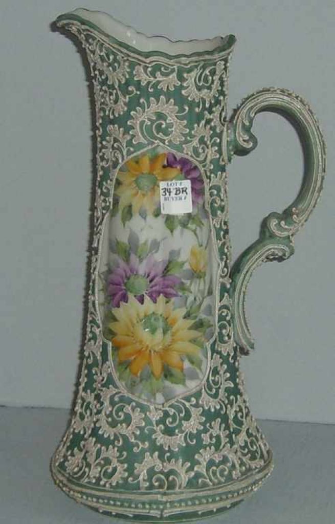 Moriage tankard with mum decorations -13" tall by Moriage tankard with mum decorations -13" tall by