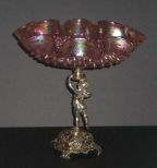 Loetz cranberry swirl cupid base compote - compote top is 11 inches round by 3 inches deep - total compote is 11 inches tall Loetz cranberry swirl cupid base compote - compote top is 11 inches round by 3 inches deep - total compote is 11 inches tall