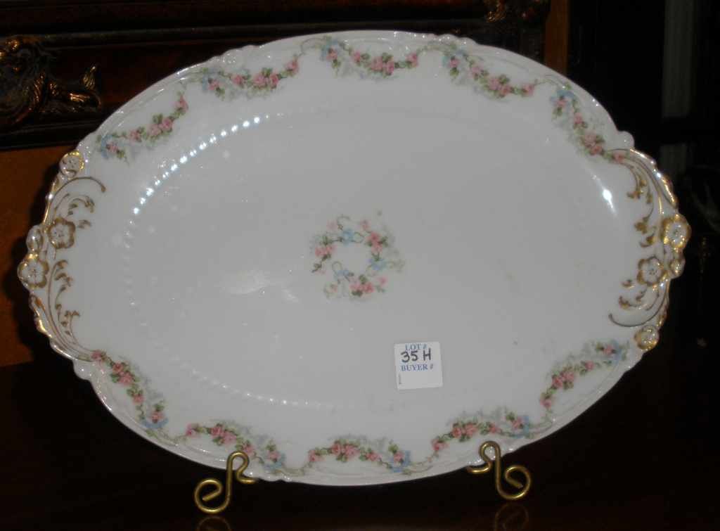 Oval Limoges platter with pink flowers - 14 1/2" length by 9 1/2" width Oval Limoges platter with pink flowers - 14 1/2" length by 9 1/2" width