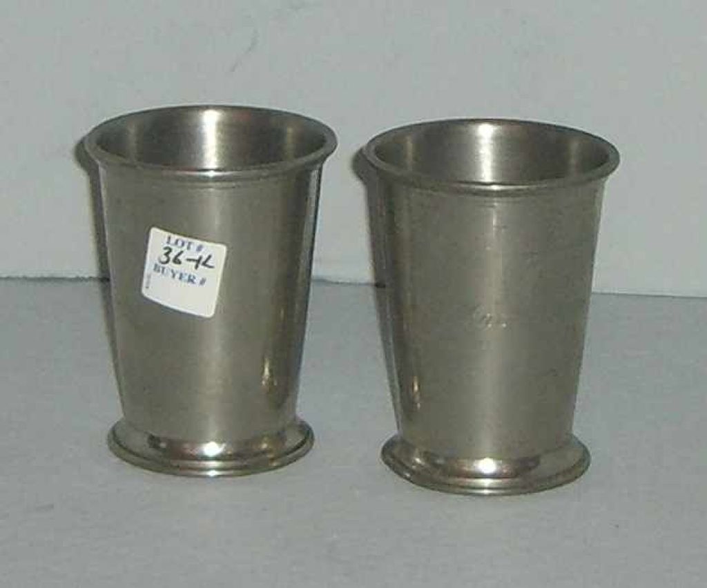 Pair of small pewter glasses - 3" round by 4" tall Pair of small pewter glasses - 3" round by 4" tall