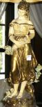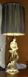 Large Spelter lady figural table lamp with bird & flowers. 26" tall Large Spelter lady figural table lamp with bird & flowers. 26" tall