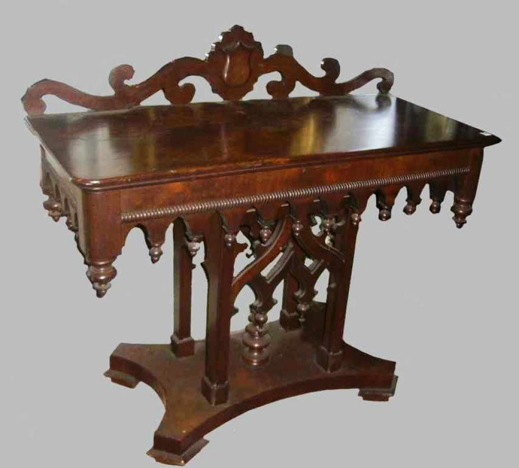 Mahogany Gothic Server - 46 1/2" length x 21" width x 42" height Mahogany Gothic Server - 46 1/2" length x 21" width x 42" height