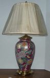 676 Pair of Red Oriental Flowered Sedgefield Lamps