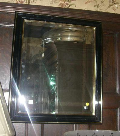 Beveled mirror in gloss black lacquer & gilt frame - 29" high by 24" wide Beveled mirror in gloss black lacquer & gilt frame - 29" high by 24" wide