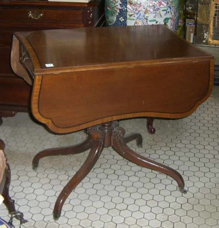 696 Pembroke One Drawer Mahogany Table w/Spider Leg Base on Casters