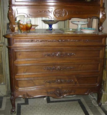 French Serpentine Front Walnut Four Drawer Marble Top Chest - 40 1/4" x 51" x 20 1/8" French Serpentine Front Walnut Four Drawer Marble Top Chest - 40 1/4" x 51" x 20 1/8"