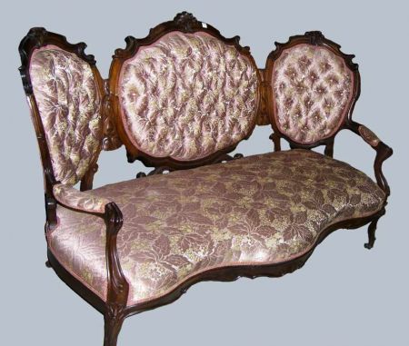 Victorian 3 Medallion, Hand Carved, Rosewood Sofa w/Pink Tufted Upholstery - 69 1/2" length x 29" deep x 41 1/2" height Victorian 3 Medallion, Hand Carved, Rosewood Sofa w/Pink Tufted Upholstery - 69 1/2" length x 29" deep x 41 1/2" height