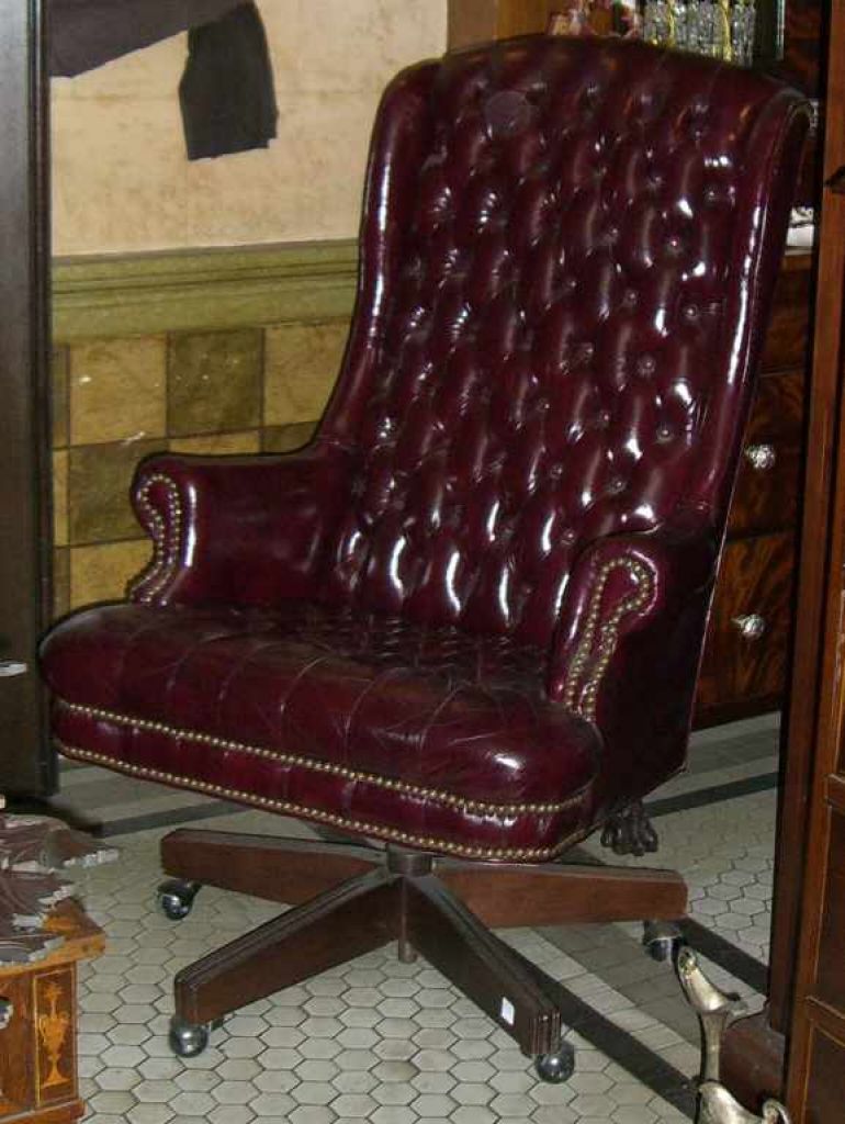 Burgundy Leather High Back Swivel Executive Desk Chair, Tufted Back Burgundy Leather High Back Swivel Executive Desk Chair, Tufted Back