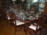Mahogany cross banded double pedestal dining table with 1 leaf - 30" tall by 46" wide by 95" long - leaf is 20" wide Mahogany cross banded double pedestal dining table with 1 leaf - 30" tall by 46" wide by 95" long - leaf is 20" wide