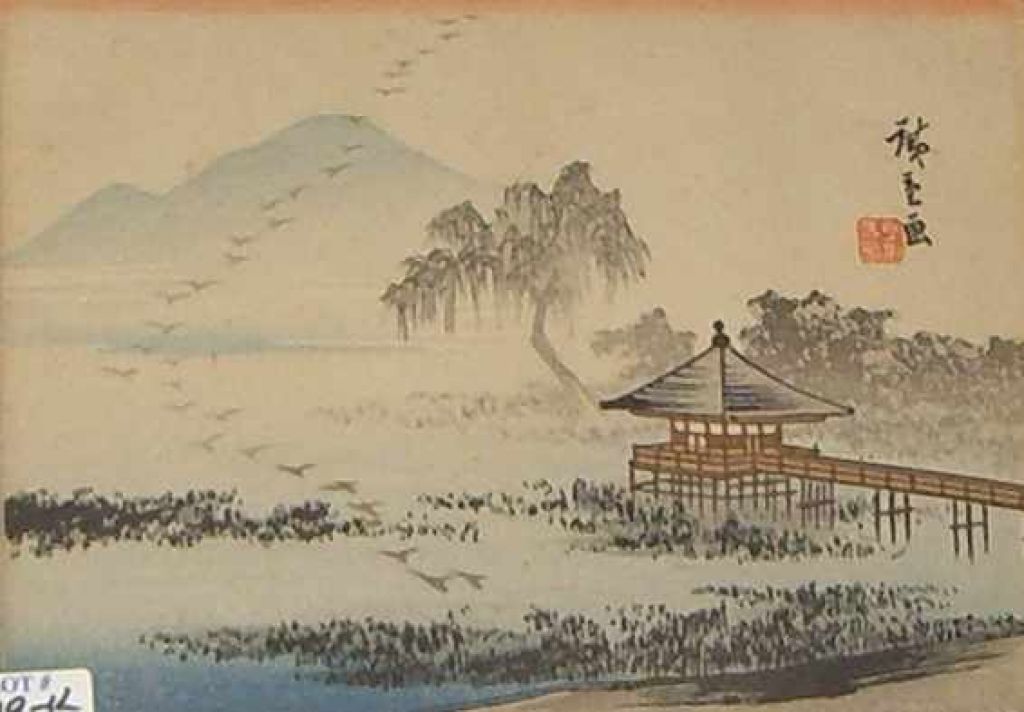 Small black framed oriental picture water & birds - 11" length by 9" width Small black framed oriental picture water & birds - 11" length by 9" width