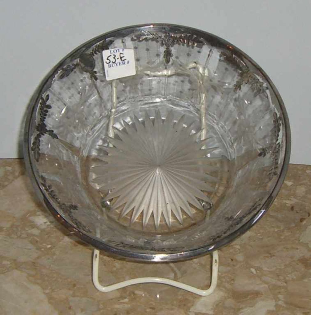Etched flower round bowl with sterling overlay of flowers - 8" round by 2 1/2" tall Etched flower round bowl with sterling overlay of flowers - 8" round by 2 1/2" tall