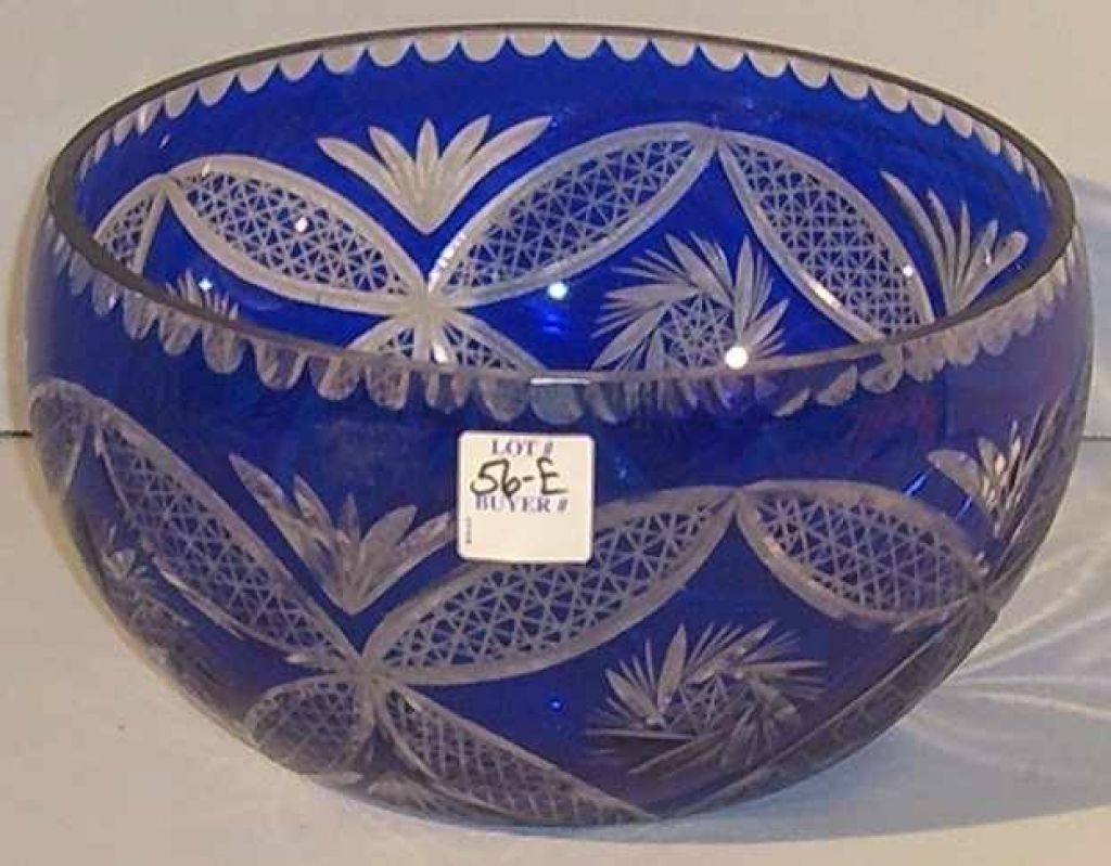Blue cut to clear bowl pinwheel pattern - 8 1/2" round by 5" tall Blue cut to clear bowl pinwheel pattern - 8 1/2" round by 5" tall
