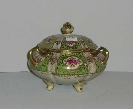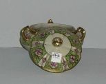 Nippon 3 handled covered dish with pink flowers & gold trim - 7" round by 7" tall Nippon 3 handled covered dish with pink flowers & gold trim - 7" round by 7" tall