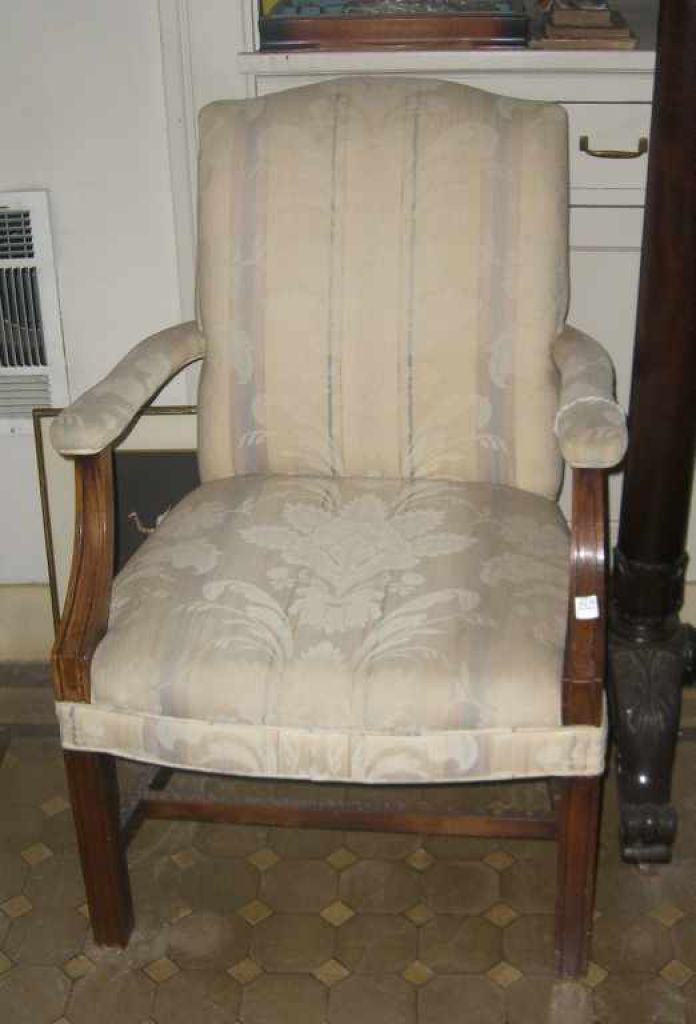 Straight leg Chippendale style upholstered arm chair - 40" tall Straight leg Chippendale style upholstered arm chair - 40" tall