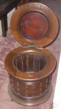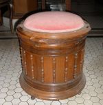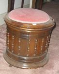 Pair of very unusual upholstered lift top walnut commodes with casters - 17" tall by 17" round Pair of very unusual upholstered lift top walnut commodes with casters - 17" tall by 17" round