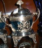 Rogers silver double handle sapphire sugar bowl. 8" length x 6" width x 9" height Rogers silver double handle sapphire sugar bowl. 8" length x 6" width x 9" height