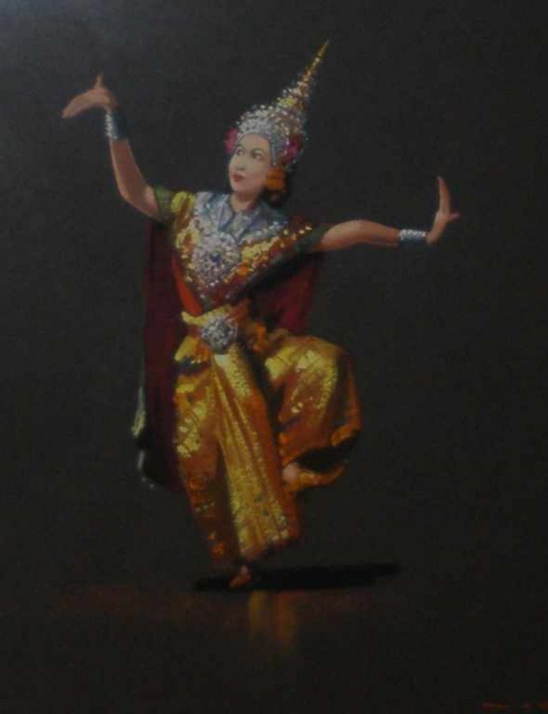 Thailand dancing girl picture in gold frame - 15" width x 19" length Thailand dancing girl picture in gold frame - 15" width x 19" length