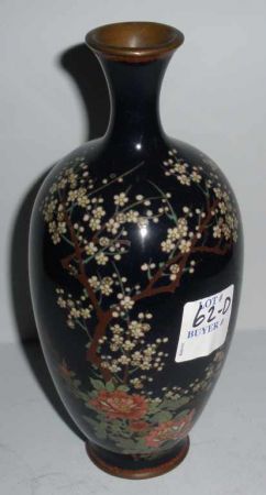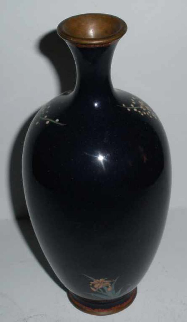 Black small bud vase with flowers - 3" round by 7" tall Black small bud vase with flowers - 3" round by 7" tall