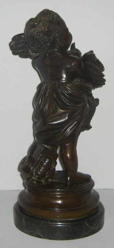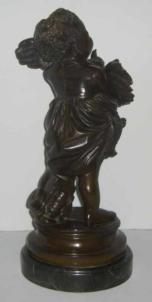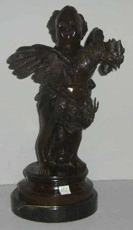 Bronze child figure holding a rooster on marble base - 20" tall Bronze child figure holding a rooster on marble base - 20" tall