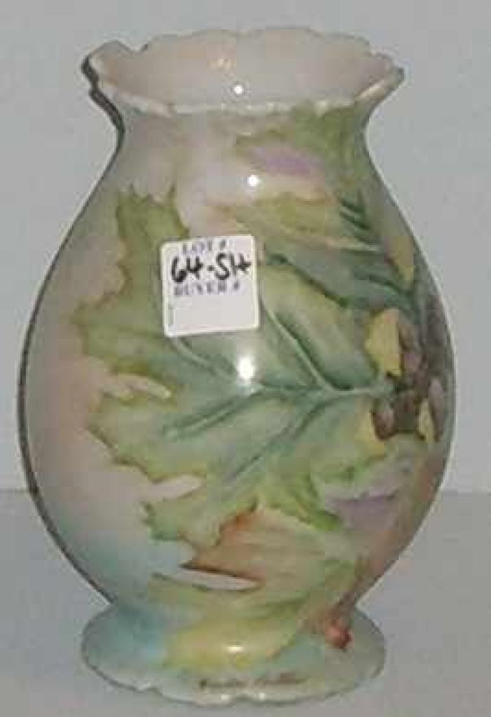 Small hand painted vase with nuts & flowers - 7" tall Small hand painted vase with nuts & flowers - 7" tall