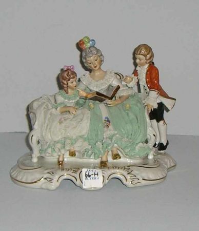 German statue Victorian lady with girl & boy on sofa reading a book - 7" tall German statue Victorian lady with girl & boy on sofa reading a book - 7" tall