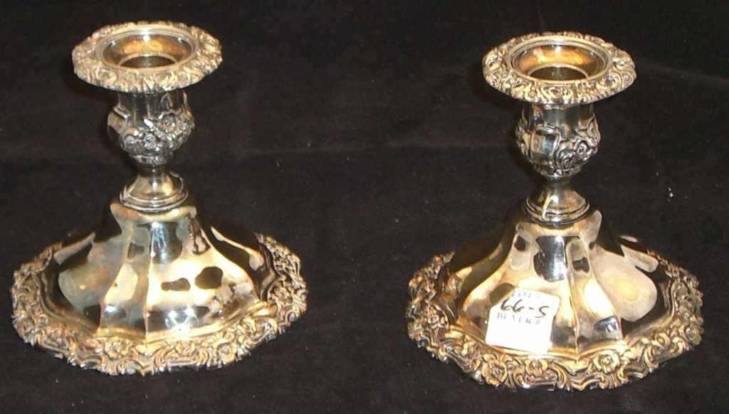 Pair silver plated candlestick holders - floral decorations Pair silver plated candlestick holders - floral decorations