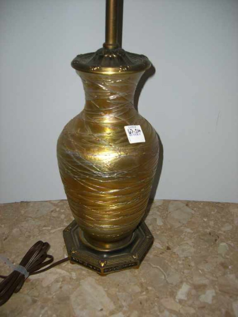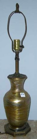 Heavy carnival swirl lamp with brass top & base Heavy carnival swirl lamp with brass top & base