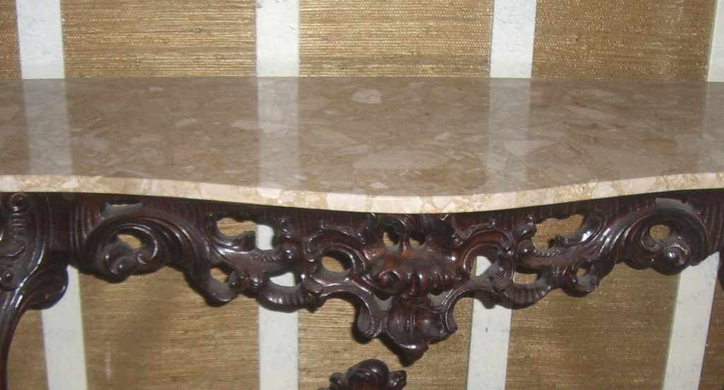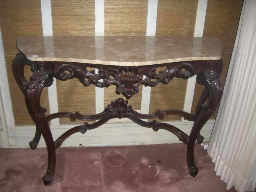 Pierced carved console table with marble top - 58" wide by 34" high by 19" deep Pierced carved console table with marble top - 58" wide by 34" high by 19" deep
