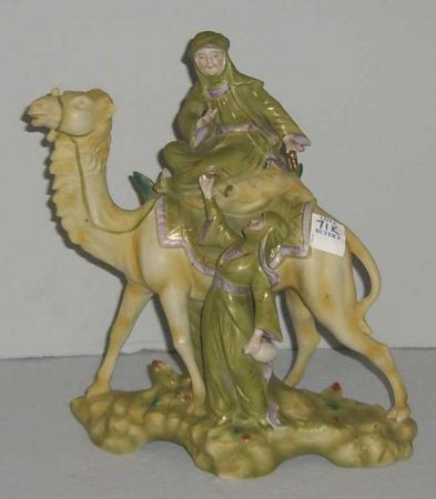 1070 Royal Dux type hand painted man riding camel with woman walking statue
