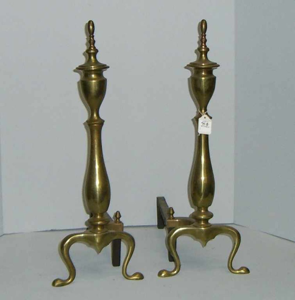 Pair Brass Tall Andirons w/Urn Shape Body and Finial Pair Brass Tall Andirons w/Urn Shape Body and Finial