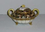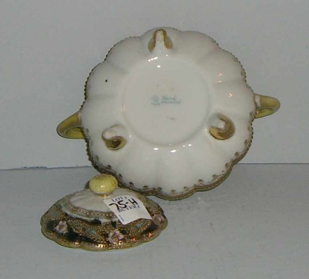 Nippon puffed sugar bowl with gold beading & pink flowers - 4" tall Nippon puffed sugar bowl with gold beading & pink flowers - 4" tall
