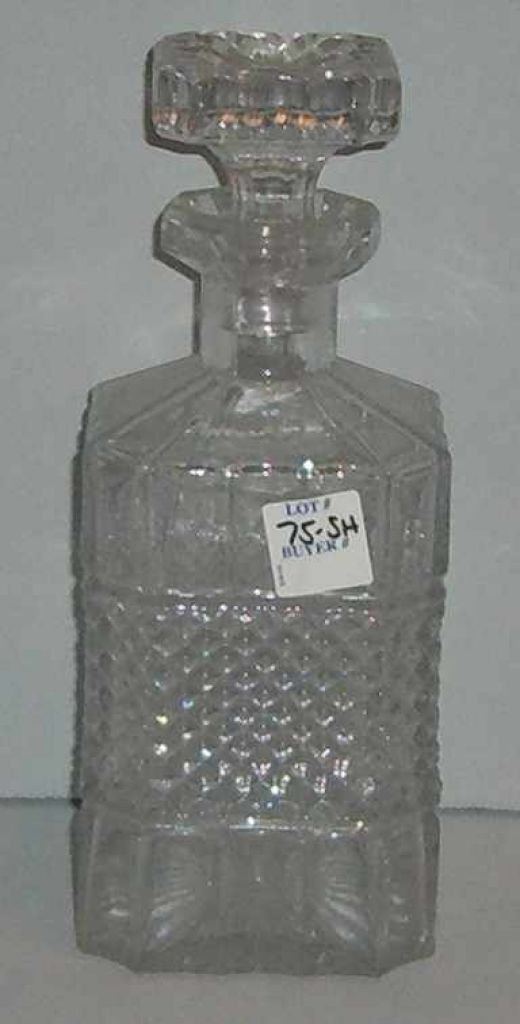 Square cut glass decanter with flat stopper - 9 1/2" tall Square cut glass decanter with flat stopper - 9 1/2" tall