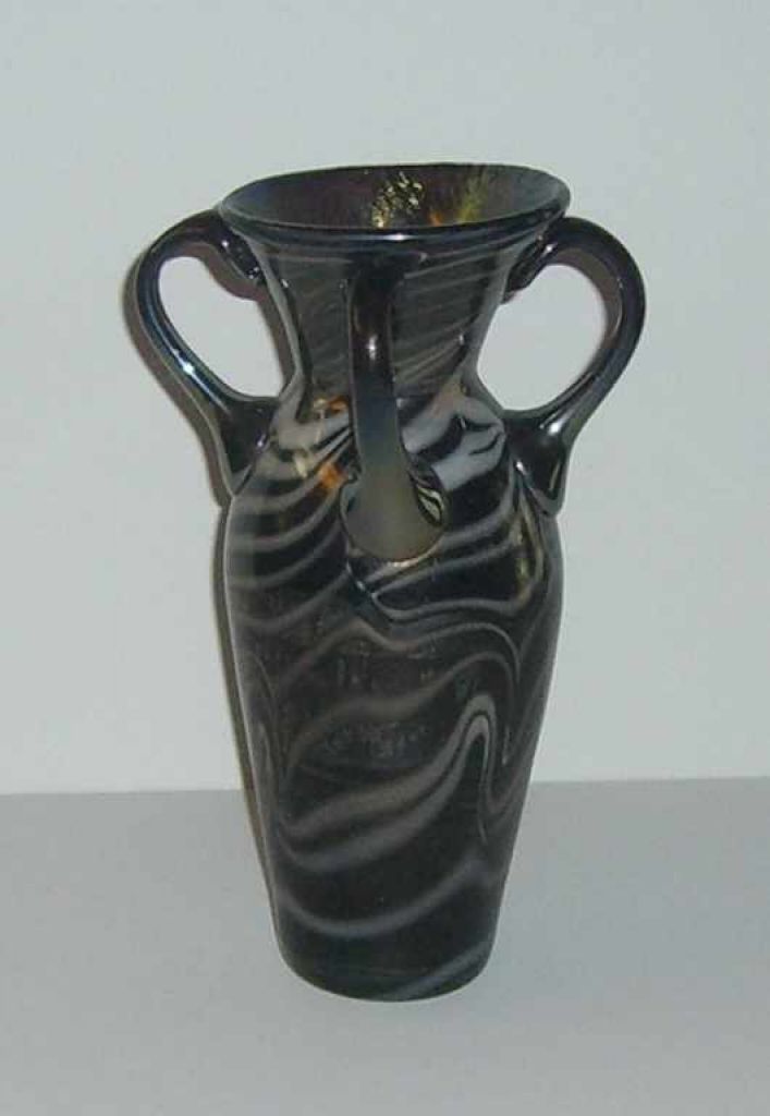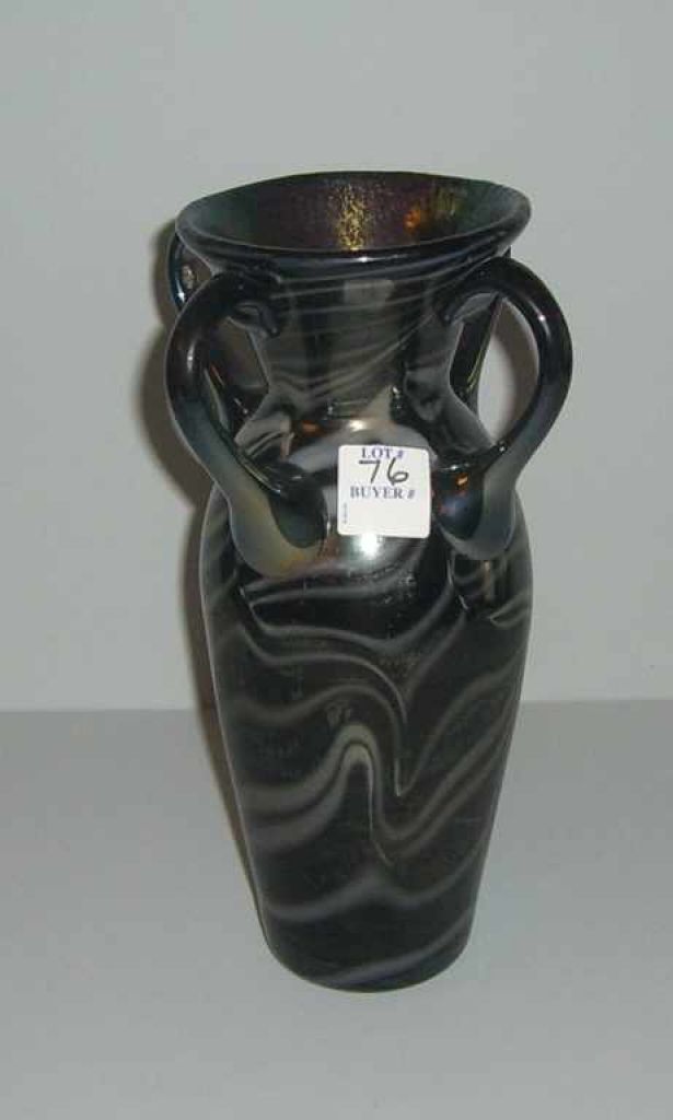 Art glass swirl vase with 4 handles - 4 1/4" wide by 9 1/2" tall Art glass swirl vase with 4 handles - 4 1/4" wide by 9 1/2" tall