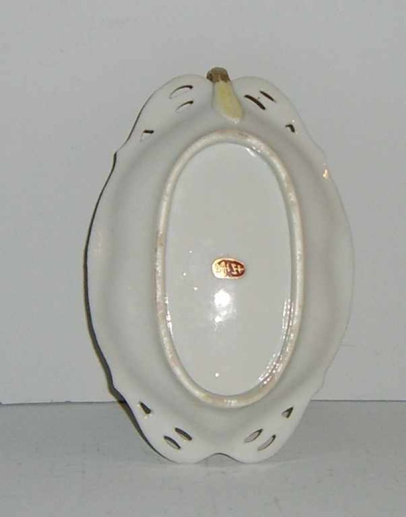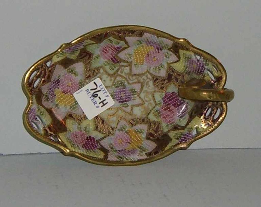 Gold trimmed nappy with flowers & roses & white beading oriental style - 6 1/2" by 4 1/2" Gold trimmed nappy with flowers & roses & white beading oriental style - 6 1/2" by 4 1/2"