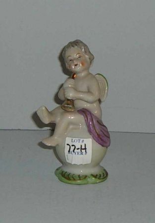 Small Occupied Japan figure of cherub sitting with horn - 5" tall Small Occupied Japan figure of cherub sitting with horn - 5" tall