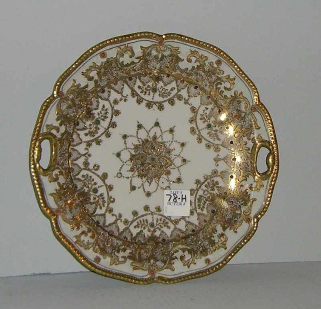 Nippon double handle plate with gold trim, gold beading, & jeweled - 10" round Nippon double handle plate with gold trim, gold beading, & jeweled - 10" round