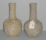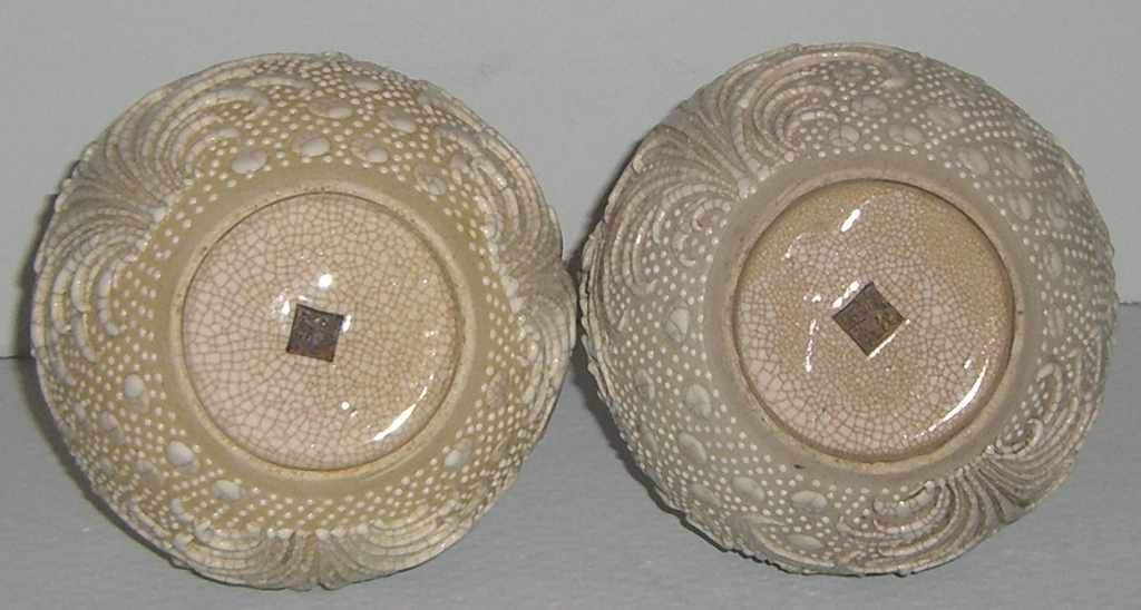 Pair of white & ivory Japanese style vase with raised crabs & bubbles - 6" round by 12" tall Pair of white & ivory Japanese style vase with raised crabs & bubbles - 6" round by 12" tall