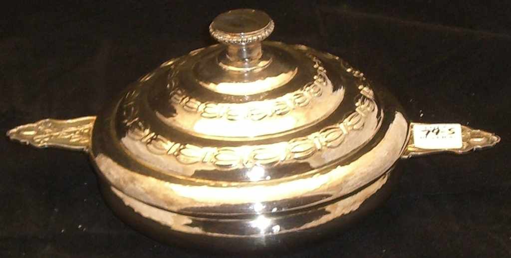 Silver plated double handled porringer Silver plated double handled porringer