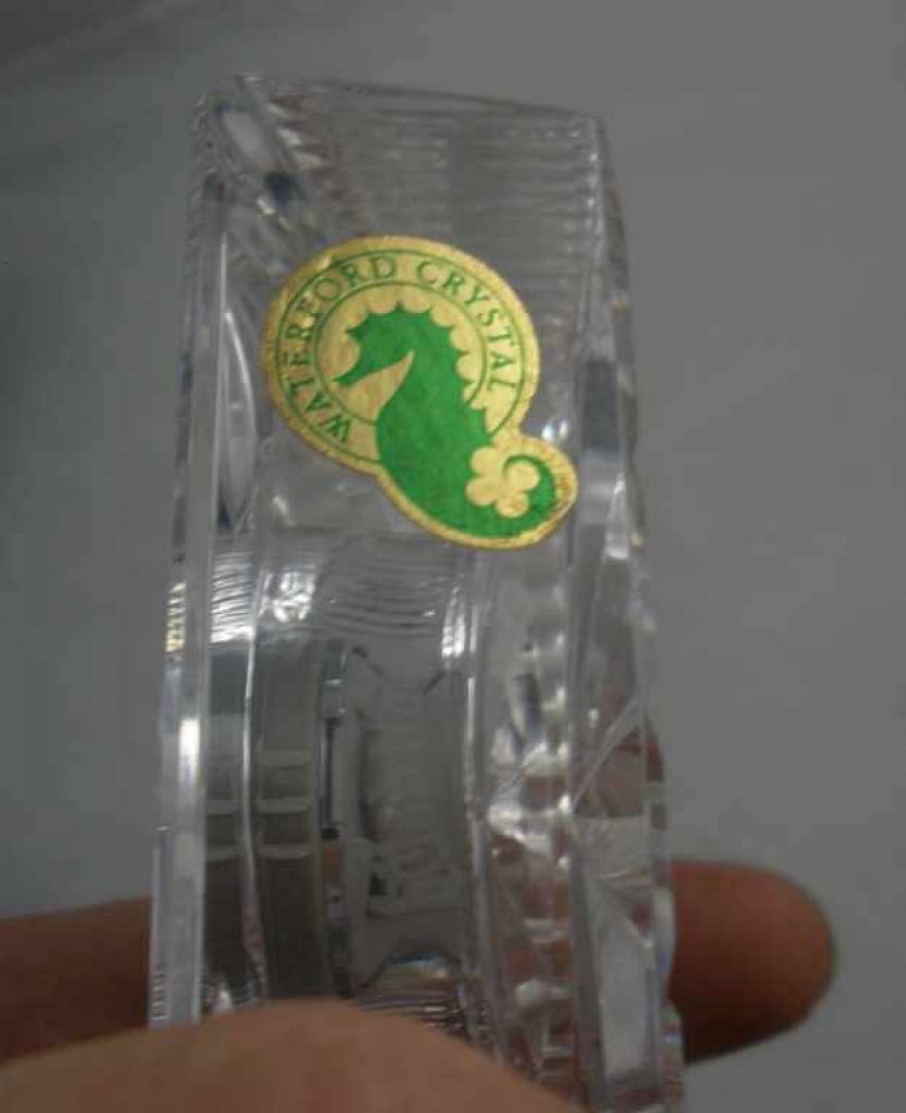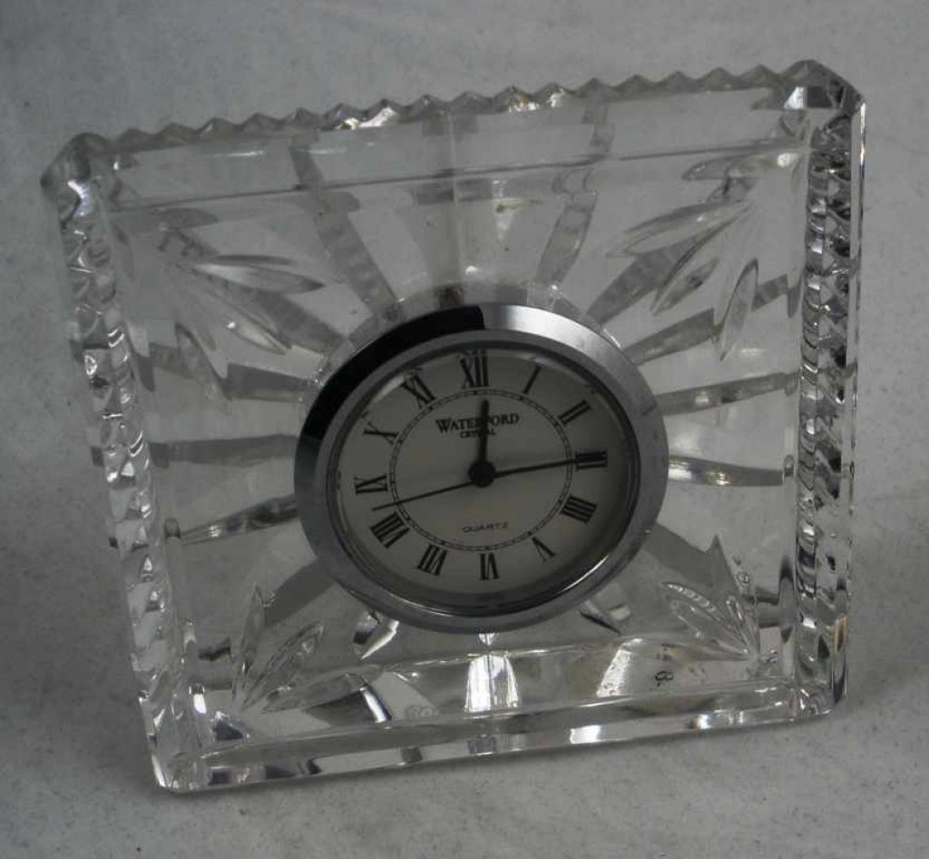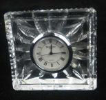 Small cut Waterford clock. 3" length x 1 1/2" width x 2 3/4" height Small cut Waterford clock. 3" length x 1 1/2" width x 2 3/4" height