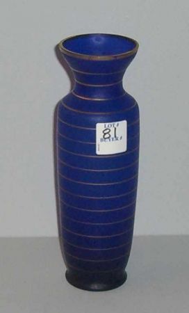 Blue satin vase with gold trim - 2 3/4" wide by 8" tall Blue satin vase with gold trim - 2 3/4" wide by 8" tall