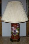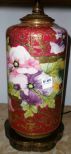 Nippon table lamp with red back ground & gilding multi colored pansies - 6" round x 14" tall Nippon table lamp with red back ground & gilding multi colored pansies - 6" round x 14" tall