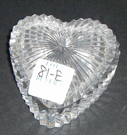 Small cut heart shaped Waterford covered ring box. 3" length x 3" width x 1" deep Small cut heart shaped Waterford covered ring box. 3" length x 3" width x 1" deep