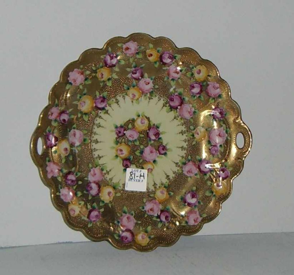 Nippon double handle plate with gold beading pink & yellow flowers - 10" round Nippon double handle plate with gold beading pink & yellow flowers - 10" round
