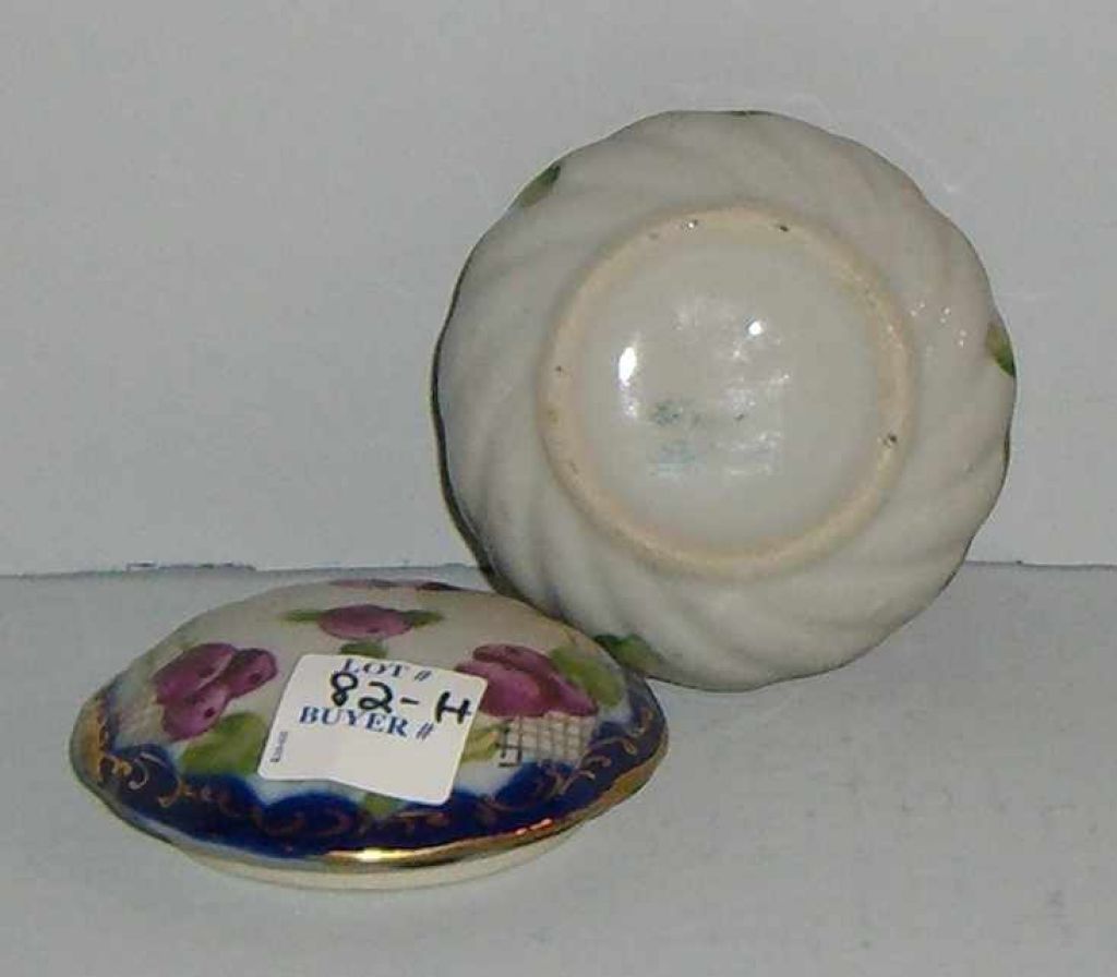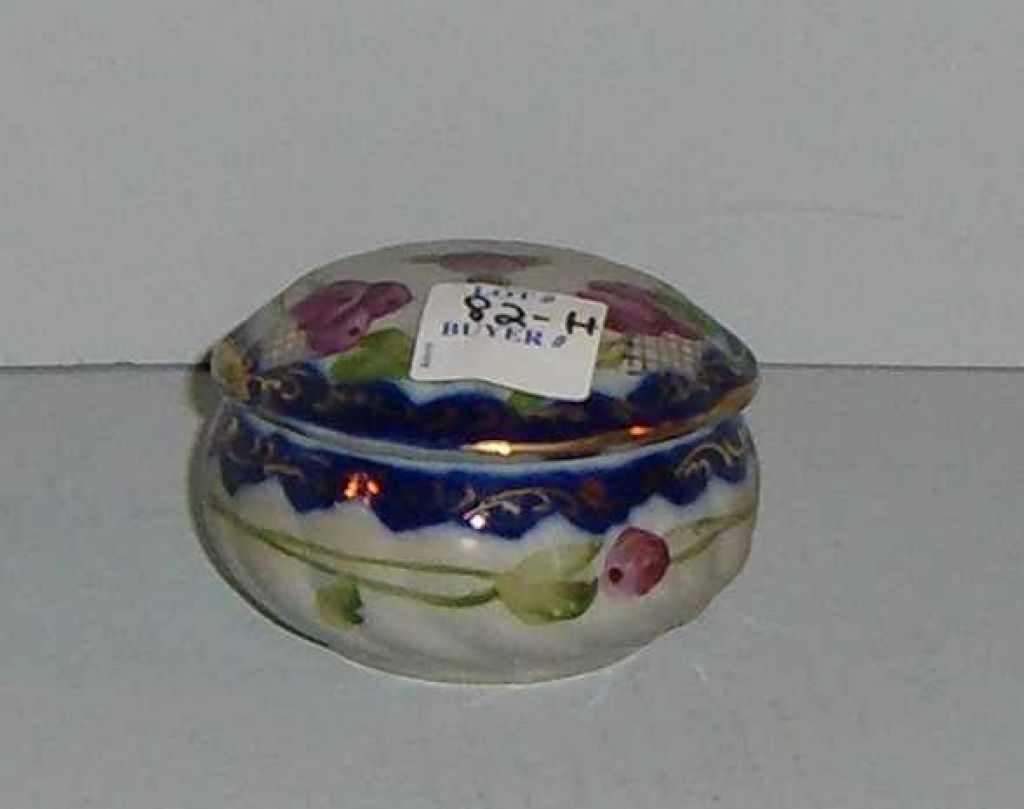Small covered Nippon powder dish with berries - 3" round by 2" tall Small covered Nippon powder dish with berries - 3" round by 2" tall